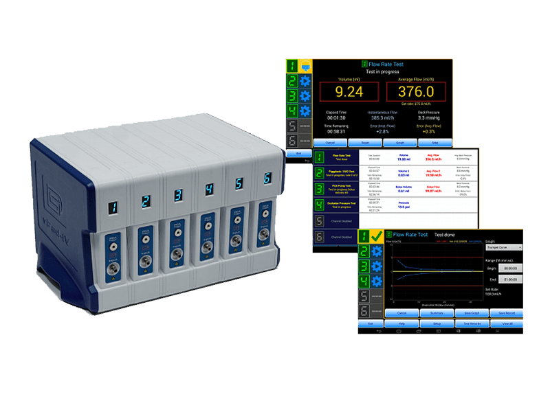 vPad-IV is the most advanced Infusion Device Analyzer on the market today. Its unique yet simple slide-and-click modular system will allow users to arbitrarily configure each analyzer between 1 – 6 channels. Meaning you could start with a single channel today and add more testing capabilities over time to increase your testing throughput since simultaneous testing can be done on all available channels. The modular system will also allow you to send an individual channel to an authorized service center for annual calibration while minimizing your down-time, or perhaps you wanted to reconfigure your vPad-IV into a portable unit before visiting an offsite location.