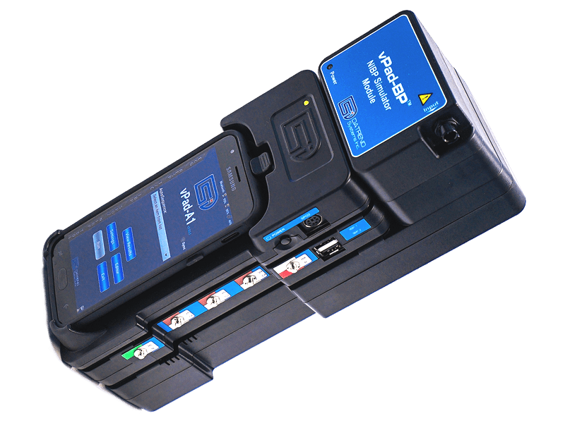 Datrend Systems’ vPad-A1, based on our revolutionary Vision-Pad Technology, is an all-in-one patient simulation system. vPad-A1 is modular and is comprised of a Multi-Parameter Patient Simulator, SpO2 test module, and a Non-Invasive Blood Pressure simulation module which may be used together or independently in various combinations, with an Android handheld device or vPad tablet providing the user interface.
